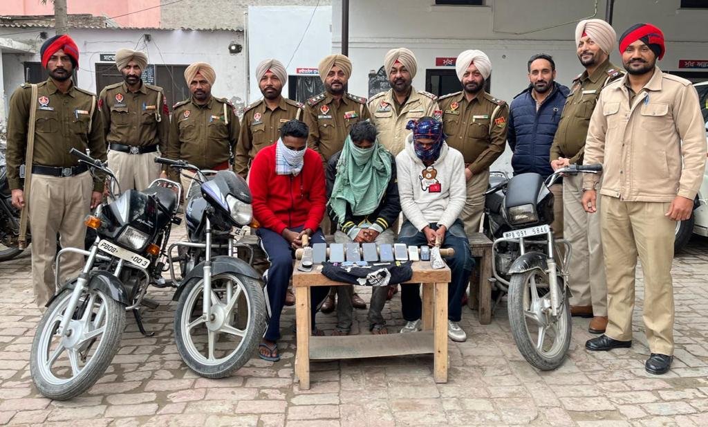 ਪਰ ਮੁਕੱਦਮਾ ਨੰਬਰ 02 ਮਿਤੀ 04,01,2023 ਜੁਰਮ 3798,482,411 (PC ਥਾਣਾ ਲੋਹੀਆ ਬਰਖਿਲਾਫ ਸਾਗਰ ਪੁੱਤਰ ਲੇਟ ਸੁਖਵਿੰਦਰ ਸਿੰਘ ਵਾਸੀ ਵਾਰਡ ਨੰਬਰ 07 ਪੱਡਾ ਕਲੋਨੀ ਲਹੀਆ ਥਾਣਾ ਲੋਹੀਆ, ਸੰਨੀ ਪੁੱਤਰ ਸੇਵਾ ਸਿੰਘ ਵਾਸੀ ਕੁਤਬੀਵਾਲ ਥਾਣਾ ਲੋਹੀਆ ਅਤੇ ਰਿਸ਼ਵ ਕੁਮਾਰ ਪੁੱਤਰ ਸੁਭਾਸ਼ ਚੰਦਰ ਵਾਸੀ ਪੱਡਾ ਕਲੋਨੀ ਥਾਣਾ ਲੋਹੀਆਂ ਦਰਜ ਰਜਿਸਟਰ ਕਰਕੇ ਦੋਸ਼ੀਆ ਨੂੰ ਕਾਬੂ ਕਰਕੇ ਦੋਸ਼ੀ ਸਾਗਰ ਦੇ ਪਾਸੋਂ 01 ਮੋਟਰਸਾਈਕਲ ਸਪਲੈਡਰ, 01 ਮੋਬਾਇਲ ਫੋਨ, 01 ਕਾਲੀ ਟੋਪ ਜਿਸ ਨਾਲ ਇਹ ਖੋਹੇ ਹੋਏ ਵਹੀਕਲ ਦਾ ਨੰਬਰ ਬਦਲਦੇ ਸੀ, 01 ਕਾਲਾ ਰੁਮਾਲ ਜਿਸ ਤੇ ਚਿੱਟੇ ਰੰਗ ਦਾ ਲੋਗੋ ਬਣਿਆਂ ਹੋਇਆਂ ਹੈ।ਜੋ ਸਾਗਰ ਆਪਣੇ ਮੂੰਹ ਉਪਰ ਬੰਨ ਕੇ ਵਾਰਦਾਤਾ ਕਰਦੇ ਸੀ, 01 ਟੋਟਾ ਚਾਂਦੀ ਦੀ ਚੈਨ ਸਮੇਤ ਲੋਕਟ,ਸਾਗਰ ਦੀ ਜੇਬ ਵਿੱਚ 200 ਰੁਪਏ ਅਤੇ ਸੰਨੀ ਪਾਸੋਂ 01 ਮੋਬਾਇਲ ਬਟਨਾ ਵਾਲਾ, 01 ਦਾਤਰ ਲੋਹਾ,ਸੰਨੀ ਦੀ ਜੇਬ ਵਿੱਚ 60 ਰੁਪਏ ਨਗਦੀ ਅਤੇ ਇਸੇ ਤਰਾ ਰਿਸ਼ਵ ਪਾਸੋਂ 01 ਦਾਤਰ ਲੋਹਾ, 01 ਮੋਬਾਇਲ ਫੋਨ ਅਤੇ 100 ਰੁਪਏ ਨਗਦ ਬ੍ਰਾਮਦ ਹੋਏ ਹਨ ਅਤੇ ਮਿਤੀ 05.01.21023 ਨੂੰ ਇਹਨਾ ਨੂੰ ਪੇਸ਼ ਅਦਾਲਤ ਕਰਕੇ 02 ਦਿਨ ਦਾ ਪੁਲਿਸ ਰਿਮਾਂਡ ਹਾਸਲ ਕੀਤਾ ਗਿਆ ਦੋਰਾਨੇ ਪੁਲਿਸ ਰਿਮਾਡ ਸਾਗਰ ਉਕਤ ਪਾਸੋਂ 01 ਮੋਟਰਸਾਈਕਲ ਸਪਲੈਡਰ ਨੰਬਰੀ PB08-EE-0018(ਜਾਅਲੀ ਨੰਬਰ) ਜੋ ਇਹਨਾ ਨੇ ਕਾਲਾ ਸੰਘਿਆ ਰੋਡ ਨਕੋਦਰ ਤੋਂ ਖੋਹਿਆ ਸੀ, 01 ਮੋਬਾਇਲ ਫੋਨ ਮਾਰਕਾ ਰੀਅਲ-ਮੀ ਟੱਚ, 01 ਮੋਬਾਇਲ ਫੋਨ ਮਾਰਕਾ ਸੈਮਸੰਗ ਟੱਚ, ਸੰਨੀ ਪਾਸੋਂ 11 ਮੋਟਰਸਾਈਕਲ ਮਾਰਕਾ CD-ਡੀਲਕਸ ਨੰਬਰੀ PB08-CE-5518 ਜੋ ਇਹਨਾਂ ਸ਼ਾਹਕੋਟ ਏਰੀਆ ਵਿੱਚੋਂ ਖੋਹਿਆ ਸੀ, 01 ਮੋਬਾਇਲ ਫੋਨ ਬਟਨਾ ਵਾਲਾ ਮਾਰਕਾ itel, 01 ਮੋਬਾਇਲ ਫੋਨ ਮਾਰਕਾ VIVO ਟਚ ਬਰਾਮਦ ਕੀਤਾ ਅਤੇ ਵਿਸ਼ਵ ਪਾਸੋਂ 01 ਮੋਬਾਇਲ ਫੋਨ ਮਾਰਕਾ ਜੋਨੀ ਟੱਚ ਬਰਾਮਦ ਕਰਨ ਵਿੱਚ ਸਫਲਤਾ ਹਾਸਿਲ ਹੋਈ ਹੈ।ਜੋ ਇਹ ਸਾਰੇ ਮੋਬਾਇਲ ਅਤੇ ਮੋਟਰਸਾਈਕਲ ਇਹਨਾ ਨੇ ਵੱਖ-ਵੱਖ ਥਾਵਾਂ ਤੋਂ ਦਾਤਰਾ ਦੀ ਨੋਕ ਤੇ ਖੋਹ ਕੀਤੇ ਹਨ।ਇਸ ਤੋਂ ਇਲਾਵਾ ਥਾਣਾ ਸਦਰ ਕਪੂਰਥਲਾ ਦੇ ਏਰੀਆ ਵਿੱਚੋ 200/- ਨਕਦੀ ਅਤੇ ਹੋਰ ਅਨੇਕਾ ਖੋਹਾ ਨੂੰ ਅੰਜਾਮ ਦਿੱਤਾ ਹੈ।ਜੋ ਇਹਨਾ ਪਾਸੋ ਡੂੰਗਾਈ ਨਾਲ ਪੁੱਛਗਿੱਛ ਕੀਤੀ ਜਾ ਰਹੀ ਹੈ।ਜਿਸ ਤੇ ਇਹਨਾ ਦੇ ਹੋਰ ਸਾਥੀਆ ਦੇ ਨਾਵਾਂ ਦਾ ਪਤਾ ਲਗਾਇਆ ਜਾ ਰਿਹਾ ਹੈ ਅਤੇ ਬਰਾਮਦਗੀ ਹੋਣ ਦੀ ਸੰਭਾਵਨਾ ਹੈ।
