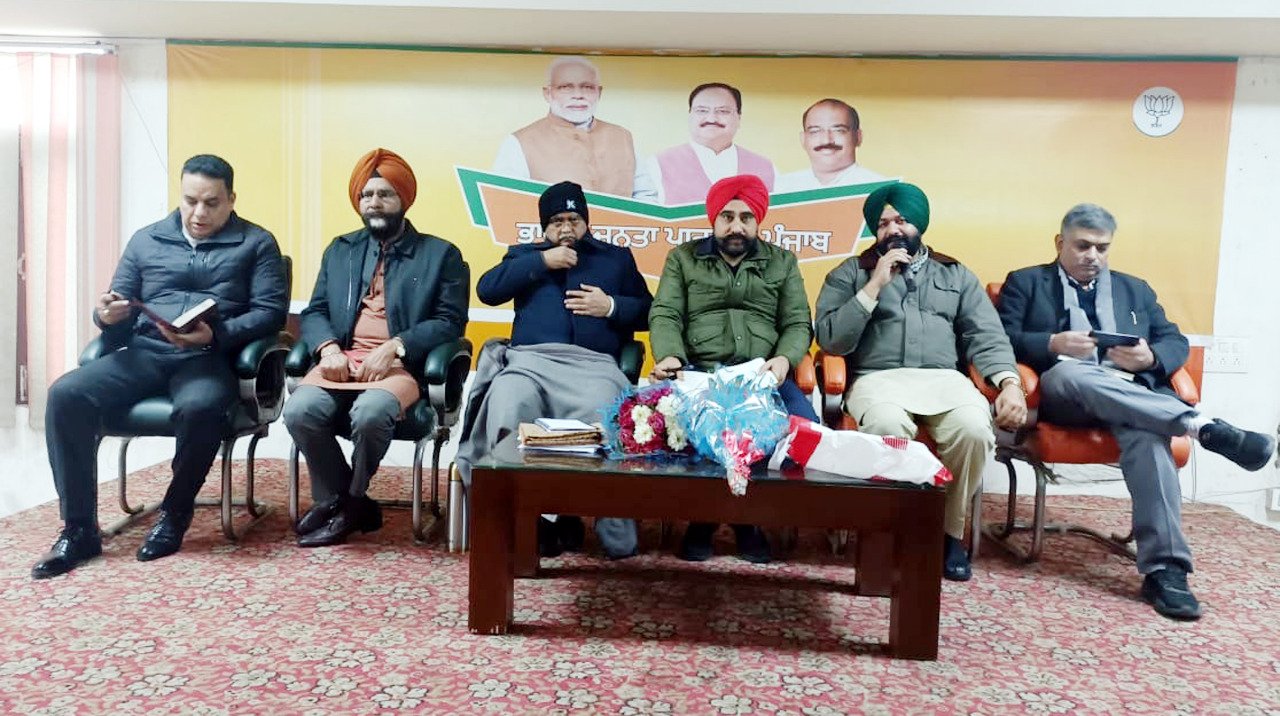 अमृतसर: 10 जनवरी (डीडी, न्यूज़पेपर), आज भाजपा संगठन महामंत्री श्रीनिवासुलू तथा भाजपा प्रदेश महासचिव बिक्रमजीत सिंह चीमा अमृतसर कोर कमेटी तथा जिला से लेकर मंडल स्तर तक के पदाधिकारियों से रु-ब-रु होने जिला भाजपा कार्यलय शहीद हरबंस लाल खन्ना स्मारक पहुँचे। भाजपा कार्यालय पहुँचने पर भाजपा अमृतसर शहरी जिलाध्यक्ष हरविंदर सिंह संधू ने भाजपा पदाधिकारियों के साथ श्रीनिवासुलू तथा बिक्रमजीत सिंह चीमा का पुष्प-गुच्छ व दोशाला देकर स्वागत किया। इसके उपरंत दोनों प्रदेश पदाधिकारीयों ने हरविंदर सिंह संधू की अध्यक्षता में आयोजित जिला से लेकर मंडल स्तर तक के पदाधिकारियों के साथ बैठक की। बैठक का शुभारम्भ दीप प्रजवल्लित कर किया गया। इस अवसर पर मंच पर उनके साथ डॉ. जगमोहन सिंह राजू पूर्व आईऐएस, डॉ. राम चावला, एडवोकेट कुमार अमित आदि उपस्थित थे। इसके बाद प्रदेश पदाधिकारियों ने भाजपा कोर ग्रुप के पदाधिकारियों के साथ बैठक की, जहाँ सबसे पहले बिक्रमजीत सिंह चीमा का सभी पदाधिकारियों के साथ परिचय करवाया गया। प्रदेश पदाधिकारियों ने बैठक में पार्टी के और प्रचार-प्रसार व संगठनात्मक कार्यों में तेजी लाने के लिए उपस्थित पदाधिकारियों से विचार-विमर्श किया तथा उनसे सुझाव भी लिए।