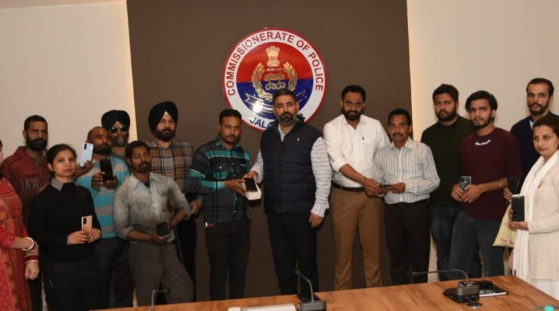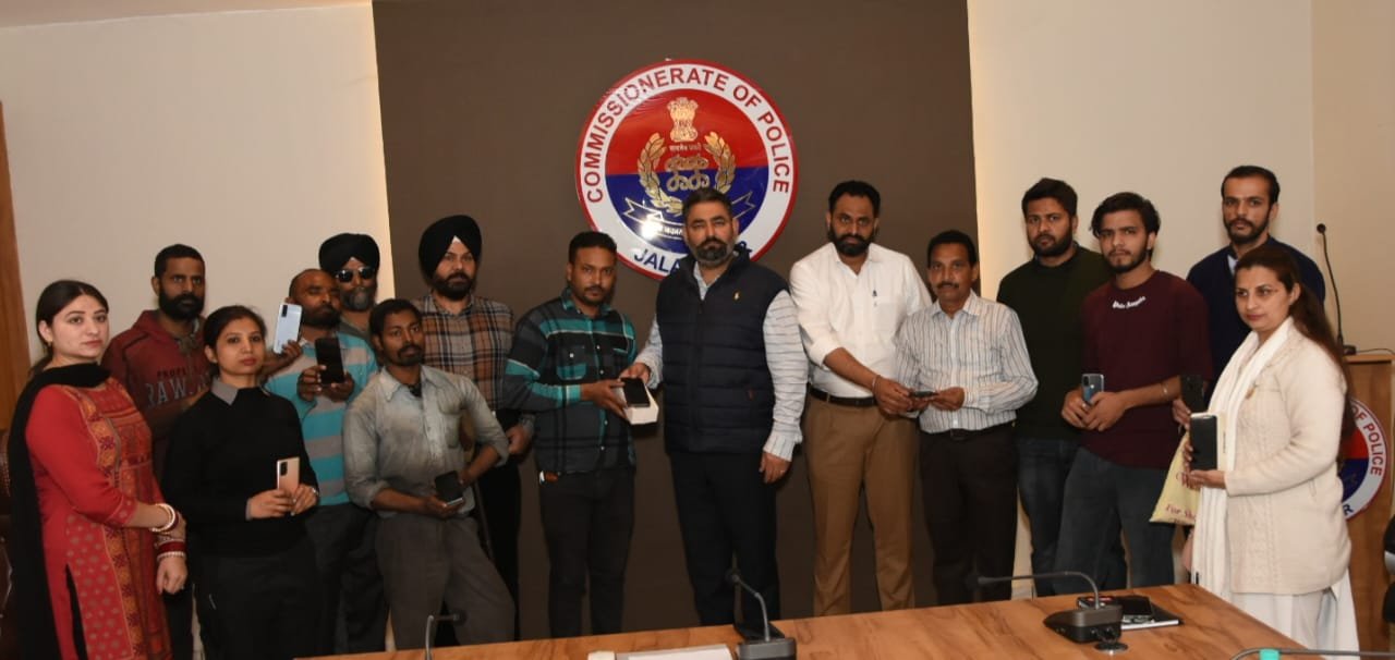 ਜਲੰਧਰ ਪੁਲੀਸ ਕਮਿਸ਼ਨਰ ਦੇ ਟੈਕਨੀਕਲ ਸੈੱਲ ਵਲੋਂ ਵੱਖ ਵੱਖ ਮੁੱਕਦਮੇ ਵਿੱਚ ਖੋਏ ਹੋਏ ਮੋਬਾਈਲ ਫੋਨ ਅਸਲ ਮਾਲਕਾ ਨੂੰ ਵਾਪਿਸ ਦਿੱਤੇ ਗਏ।
