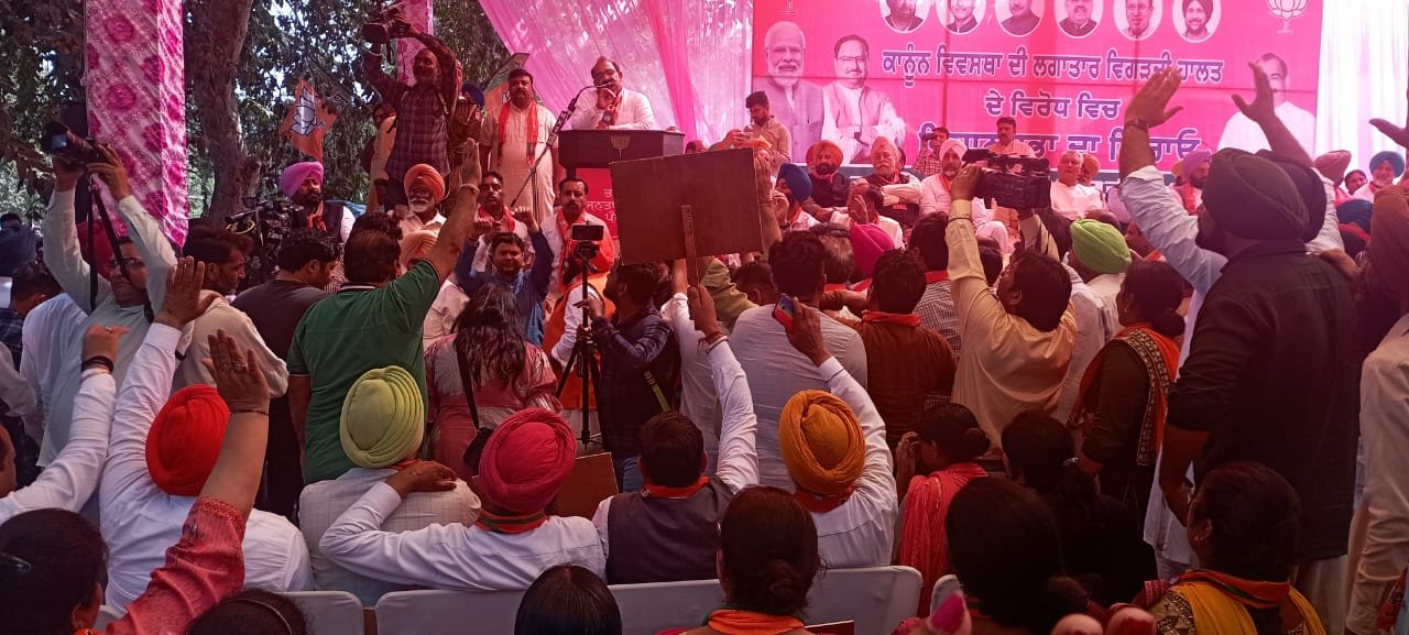 अश्वनी शर्मा ने इस अवसर पर उपस्थित कार्यकर्ताओं की विशाल जनसमूह को संबोधित करते हुए कहा कि पंजाब की आप सरकार के नाकारापन की इससे अधिक ख़राब स्थिति क्या हो सकती है मुख्यमंत्री भगवंत मान तथा उनकी सरकार देशविरोधी शक्तियों व अलगाववादीयों पर नकेल कसने में एक बार फिर पूरी तरह नाकाम साबित हो रही है। आज की ताज़ा उदाहरण अमृतसर में सामने आई है, जहाँ एक बार फिर से खालिस्तानी गुरपतवंत सिंह पन्नू ने अपने कथित समर्थकों के माध्यम से पंजाब सरकार व अकाल तख्त साहिब के जत्थेदार साहिब को चुनौती देते हुए देश की राष्ट्रपति श्रीमती द्रोपदी मुर्मो के दौरे से बिलकुल पहले अमृतसर के गुरु नानक देव विश्व-विद्यालय के बाहर जहाँ G-20 समेलन होने वाला है, उसकी दीवारों पर आज रात खालिस्तान समर्थक नारे लिख कर पंजाब सरकार को फिर से चुनौती दी है। उन्होंने कहा कि श्री आनंदपुर साहिब में निहंग बाने पहने युवक की सरेआम हत्या की गई है, यह घोर निंदनीय है। भाजपा इस घटना की कड़ी निंदा करती है और आरोपियों के खिलाफ कड़ी कार्रवाई की मांग करती है। प्रसिद्ध पंजाबी गायक सिद्धू मूसेवाला के पिता अपने बेटे की हत्या के इन्साफ पाने के लिए पंजाब सरकार के विरुद्ध पंजाब विधानसभा के बाहर धरने पर बैठे हैं। जबकि पंजाब सरकार अपनी झूठी वह वही पाने तथा केजरीवाल को खुश करने में व्यस्त है। पंजाब की जनता या उसकी सुरक्षा से भगवंत मान सरकार कोई लेने देना नहीं है। लेकिन पंजाब सरकार के इन देशविरोधी शक्तियों को खुश करने के मंसूबों को भाजपा कभी सफल नही होने देगी। पंजाब की आम आदमी पार्टी की भ्रष्टचार में लिप्त भगवंत मान सरकार के 11 महीने के शासन में पंजाब में कानून व्यवस्था बुरी तरह ध्वस्त हो गई है। पंजाब सरकार ने राज्य का माहौल खराब करने वालों को खुली छूट दे रखी है। पंजाबियों के दिलों में डर का माहौल है और उन्हें लग रहा है कि पंजाब सरकार पंजाब को 1984 के काले आतंकवाद के दौर में वापस ले जा रही है। भाजपा अपना फर्ज निभा रही है और हम आज पंजाबियों के हितों की रक्षा के लिए सड़को पर उतरे हैं। मुख्यमंत्री भगवंत मान पंजाब में कानून व्यवस्था को लेकर लगातार झूठ बोल रहे हैं। जबकि सभी जानते हैं कि पिछले 11 महीनों में पंजाब के हालात कितने खराब हो चुके हैं?