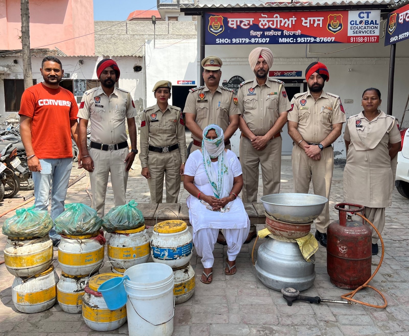 ਸ੍ਰੀ ਮੁਖਵਿੰਦਰ ਸਿੰਘ ਭੁੱਲਰ ਪੀ.ਪੀ.ਐਸ ਸੀਨੀਅਰ ਪੁਲਿਸ ਕਪਤਾਨ, ਜਲੰਧਰ-ਦਿਹਾਤੀ ਜੀ ਦੇ ਦਿਸ਼ਾਂ ਨਿਰਦੇਸ਼ਾਂ ਅਨੁਸਾਰ ਸਮਾਜ ਦੇ ਭੈੜੇ ਅਨਸਰਾਂ/ਨਸ਼ਾ ਤਸਕਰਾਂ ਖਿਲਾਫ ਅਤੇ ਜਿਮਨੀ ਚੋਣਾ 2023 ਦੇ ਸਬੰਧ ਵਿੱਚ ਚਲਾਈ ਗਈ ਵਿਸ਼ੇਸ਼ ਮੁਹਿੰਮ ਤਹਿਤ ਸ੍ਰੀ ਮਨਪ੍ਰੀਤ ਸਿੰਘ ਢਿੱਲ PPS ਪੁਲਿਸ ਕਪਤਾਨ, ਤਫਤੀਸ਼, ਸ੍ਰੀ ਗੁਰਪ੍ਰੀਤ ਸਿੰਘ ਪੀ.ਪੀ.ਐਸ ਪੁਲਿਸ ਕਪਤਾਨ, ਸਬ ਡਵੀਜਨ ਸ਼ਾਹਕੋਟ ਦੀ ਅਗਵਾਈ ਹੇਠ ਇੰਸਪੈਕਟਰ ਜੈ ਪਾਲ ਮੁੱਖ ਅਫਸਰ ਥਾਣਾ ਲੋਹੀਆ ਦੀ ਪੁਲਿਸ ਪਾਰਟੀ ਵੱਲੋਂ ਸ਼ਰਾਬ ਨਜੈਜ ਦਾ ਧੰਦਾ ਕਰਨ ਵਾਲੀ 01 ਮਹਿਲਾ ਨਸ਼ਾ ਤਸਕਰ ਨੂੰ ਗ੍ਰਿਫਤਾਰ ਕਰਕੇ ਉਸ ਪਾਸੇ ਭੱਠੀ, ਭੱਠੀ ਦਾ ਸਮਾਨ, ਲਾਹੁਣ ਵਜਨੀ 155 ਲੀਟਰ ਅਤੇ ()1 ਕੇਨੀ ਪਲਾਸਟਿਕ ਸ਼ਰਾਬ ਨਜੈਜ ਵਜਨੀ 15000 ML ਬ੍ਰਾਮਦ ਕਰਨ ਵਿਚ ਸਫਲਤਾ ਹਾਸਲ ਕੀਤੀ ਗਈ ਹੈ।
