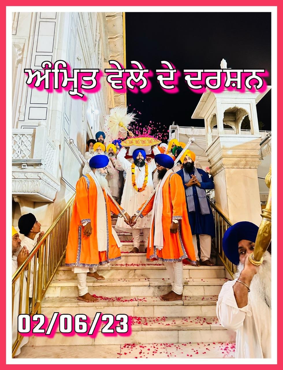 Aad Guru Jugo-Jug Atal Satguru Dhan Dhan Sahib Sri Guru Granth Sahib Ji da Sachkhand Sri Harmandir Sahib Sri Amritsar Sahib Ji Vekha Hoea Ajh Amrit Wela Da Mukhwak: 19th Jeth (Samvat 555 Nanakshahi) 02-June-2023 Ang 586-587