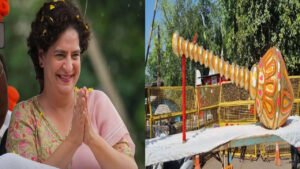 मध्य प्रदेश में प्रियंका गांधी के स्वागत में लगी 30 फीट की गदा