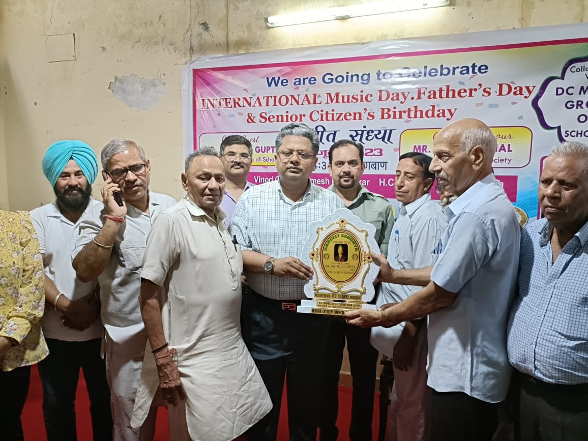 फिरोजपुर (राकेश कपूर) आज सीनियर सिटीजन कौंसिल एवं डीसी मॉडल ग्रुप ऑफ स्कूल्स ने मिलकर बागबान में अंतरराष्ट्रीय म्यूजिक डे, फादर्स डे एवं सीनियर्स बर्थडे उत्सव धूमधाम से मनाया। इस मौके पर डॉ :अनिरुद्ध गुप्ता सीईओ डीसीएम ग्रुप ऑफ स्कूल्स मुख्य अतिथि के तौर पर शामिल हुए। श्री अशोक बहल सेक्रेटरी जिला रेडक्रॉस सोसायटी फिरोजपुर बतौर विशेष मेहमान शामिल हुए। इस मौके पर डीसी मॉडल इंटरनेशनल स्कूल के प्रिंसिपल श्री सुमेश सी मिश्रा, श्री मनरीत सिंह वाइस प्रिंसिपल , अभिषेक अरोड़ा वाइस प्रिंसिपल एवं श्रीमती गगनदीप कौर पी. आर. ओ.उत्सव में विशेष तौर पर शामिल हुए। मैडम अर्चना ने एंकर के तौर पर ड्यूटी बखूबी निभाई।मुख्य अतिथि के आगमन पर सीनियर सिटीजन कौंसिल के सदस्यों द्वारा फूलों की वर्षा कर के मुख्य अतिथि डॉ अनिरुद्ध गुप्ता का स्वागत किया म्यूजिक डे के उपलक्ष में डीसीएम इंटरनेशनल स्कूल एवं सीनियर सिटीजन कौंसिल के कलाकारों ने खूब रंगारंग प्रोग्राम पेश किए। श्री प्रेमनाथ एवं श्री प्रिंस हरिदेव ने मुख्य अतिथि के स्वागत में बहुत उम्दा गीत पेश किए।जानकारी देते हुए कौंसिल के प्रधान पीडी शर्मा ने बताया कि आज के मुख्य अतिथि डॉ अनिरुद्ध गुप्ता सीईओ डीसीएम ग्रुप ऑफ स्कूल्स हमारे बच्चों की पढ़ाई और तरक्की के लिए दिन रात कार्य कर रहे हैं । गुप्ता जी का नाम सिर्फ फिरोजपुर या भारत ही नहीं बल्कि विदेशों में भी डीसीएम का स्कूल्स का डंका बोल रहा है। विदेशों में भी डीसीएम स्कूलों के पढ़े हुए बच्चों की अलग से पहचान होती है ।यह हमारे लिए बहुत ही सम्मान की बात है। श्री शर्मा ने सभी आए मेहमानों का दिल से धन्यवाद किया और कौंसिल की कारगुजारी के बारे में जानकारी दें। उन्होंने श्री अशोक बहल एवं प्रिंसिपल मिश्रा जी का भी धन्यवाद किया जिन्होंने समय निकालकर सीनियर सिटीजन कौशल के उत्सव में भाग लिया।मुख्य अतिथि डॉक्टर अनिरुद्ध गुप्ता जी ने बताया अक्सर वह विदेशों में जाते रहते हैं वहां की शिक्षा पर विचार विमर्श करते हुए डीसीएम के बच्चों के भविष्य को उज्जवल पानी बनाने के लिए कार्य करते रहते हैं। श्री गुप्ता जी ने बताया कि वह ऑस्ट्रेलिया कनाडा या दूसरे देशों में अक्सर ही जाते रहते हैं तब वह फिरोजपुर के डीसीएम ग्रुप ऑफ स्कूल्स के पढ़े हुए बच्चों का विशेष तौर पर ध्यान रखते हैं और उन्हें एक दूसरे को सहयोग देने के लिए प्रेरित करते हैं । उन्होंने बताया वह स्कूलों में सभी राष्ट्रीय और अंतरराष्ट्रीय उत्सव मनाते हैं। उन्होंने आवाहन किया कि हम यह सभी उत्सव सीनियर सिटीजन के साथ मिलकर मनाते रहेंगे।मुख्य अतिथि एवं दूसरे अतिथि गण द्वारा सभी जन्मदिन वाले सदस्यों , संगीत कलाकारों स्किट कलाकारों एवं मेहमानों को सम्