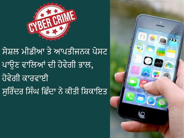 ਸੋਸ਼ਲ ਮੀਡੀਆ ਤੇ ਆਪਤੀਜਨਕ ਭਾਸ਼ਾ ਦੀ ਵਰਤੋਂ ਕਰਕੇ ਪਾਈ ਪੋਸਟ ਹੁਣ ਹੋਵੇਗੀ ਕਾਰਵਾਈ।