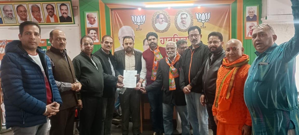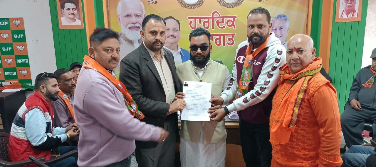 -जालंधर भाजपा कार्यालय मे जिला महामंत्री अशोक सरीन हिक्की को मंडल भाजपा प्रधान मनीष बल,कुनाल शर्मा के साथ अलग-अलग वार्ड से आवेदन देते भाजपा कार्यकर्ता।