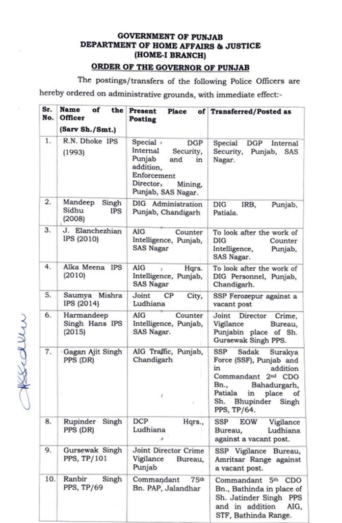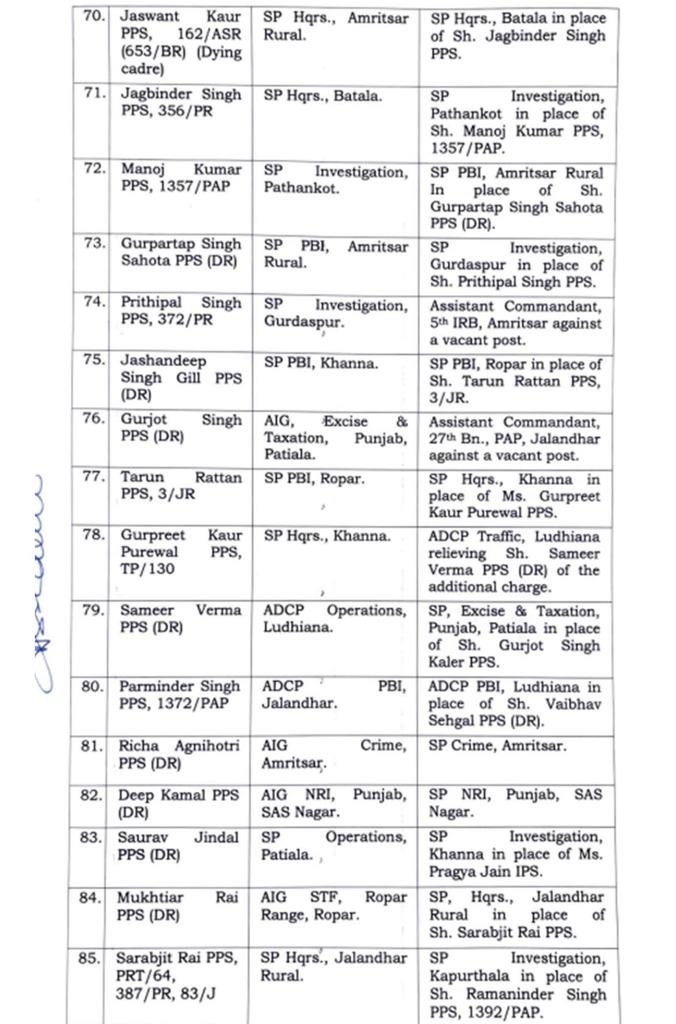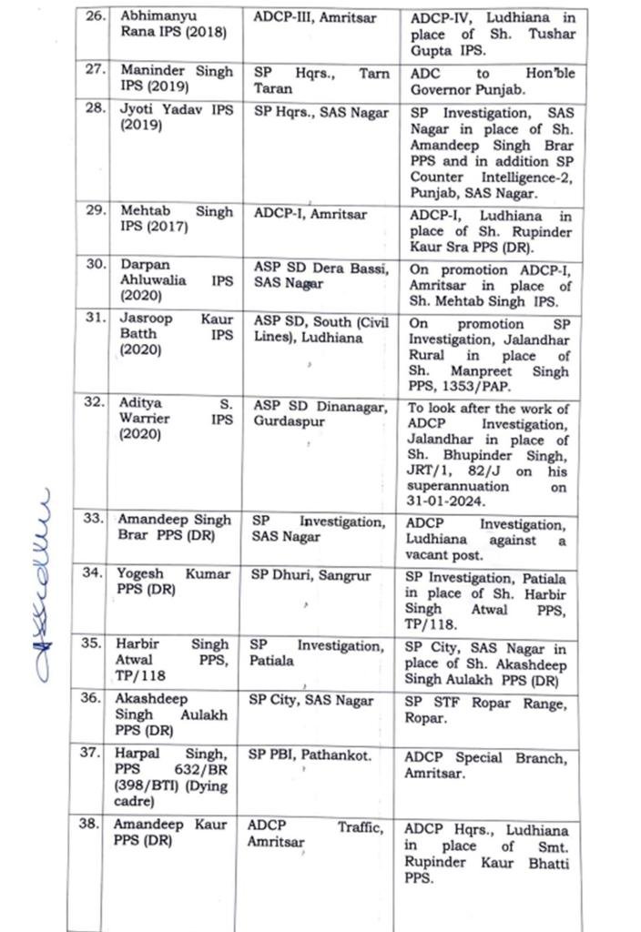 Amritsar CityBreaking NEWSChandigarhGeneralJalandharLatest newsLatest update NewsludhianaMukeriya NEWS informationNewsPoliticsPunjabTechnologyTop NewsTOP STORIESTrending ਪੰਜਾਬ ਸਰਕਾਰ ਦੇ ਵਲੋਂ 91 IPS ਅਤੇ PPS ਅਫ਼ਸਰਾਂ ਦਾ ਤਬਾਦਲਾ ਪੜੋ ਪੂਰੀ ਲਿਸਟ January 25, 2024 chief editor Spread the News25/ਜਨਵਰੀ । ਡੀਡੀ ਨਿਊਜ਼ਪੇਪਰ, ਪੰਜਾਬ ਸਰਕਾਰ ਦੇ ਵਲੋਂ 91 IPS ਅਤੇ PPS ਅਫ਼ਸਰਾਂ ਦਾ ਤਬਾਦਲਾ ਕੀਤਾ ਗਿਆ ਹੈ।