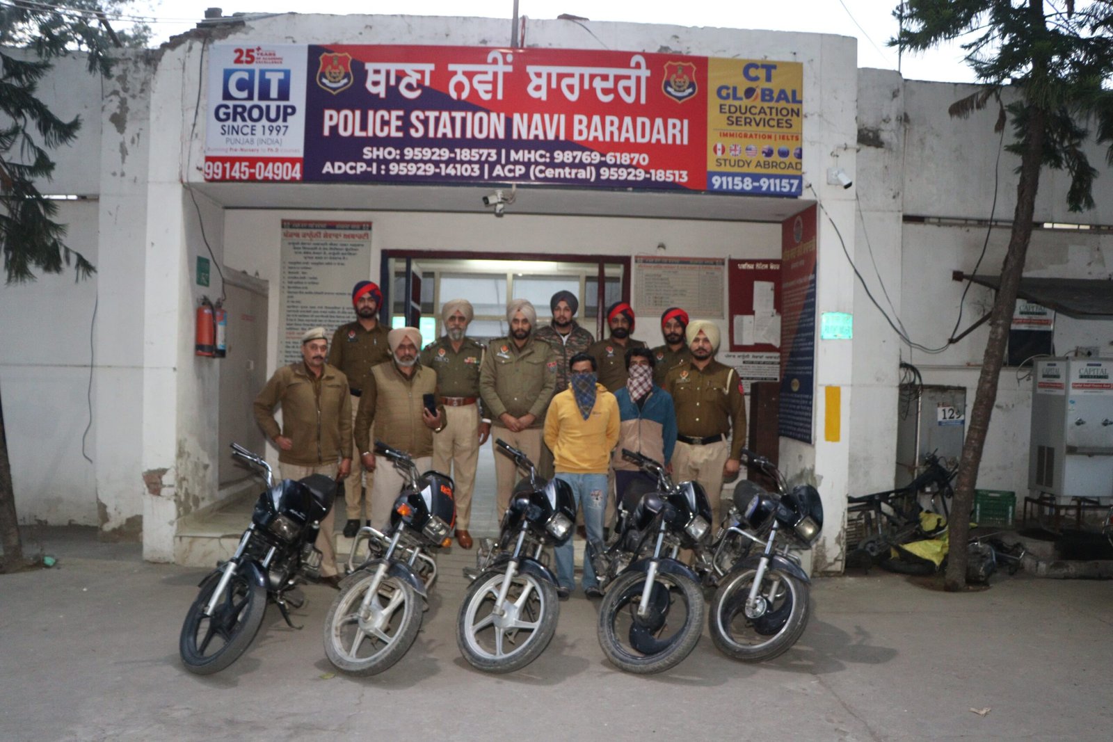 पुलिस आयुक्त ने बताया कि इस कार्रवाई के दौरान चोरी की पांच मोटरसाइकिलें और चोरी का एक मोबाइल फोन बरामद किया गया। उन्होंने कहा कि दोनों आरोपियों का कोई आपराधिक रिकार्ड नहीं है और उनके खिलाफ एफआईआर नंबर 17 दिनांक 02-02-2024 धारा 379बी,379,411 आईपीसी के तहत न्यू बारादरी जालंधर में दर्ज की गई है। श्री स्वपन शर्मा ने कहा कि मामले की आगे की जांच जारी है और इस मामले में बाकी अपराधियों को भी जल्द ही सलाखों के पीछे भेजा जाएगा।