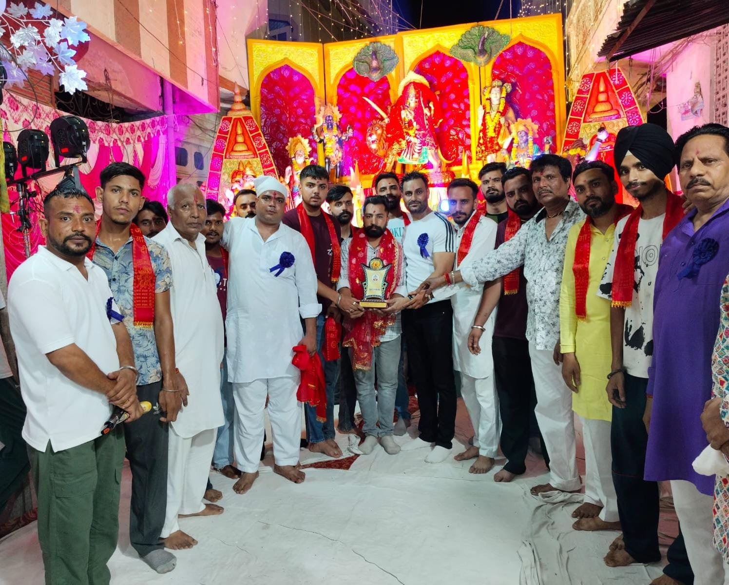 नौजवान एकता ग्रुप के प्रधान राजन शर्मा को और सभी पदअधिकारियों को माता रानी की चुनरी देकर से सम्मानित किया गया राजन शर्मा ने कहा मां भगवती की कृपा अपने बच्चों पर सदा बनी रहे माता रानी के भगत संसार में ऐसे धार्मिक कार्यक्रम आयोजित करते रहे जिससे हमारे आसपास भाईचारा प्रेम प्यार बढ़ता है धर्म हमेशा हमें प्रेम और भाईचारा संसार में नेक कार्य करने के लिए प्रेरित करता है मां का प्यार और मां काआशीर्वाद अपने बच्चों को जीवन में सदई यश और तरक्की की राह पर हर समय सहायता करता है सदैव विशेष शक्ति की तरह बुरे रास्तों रूकावटों को दूर करता है माता को जग जननी इसलिए कहा जाता है भगवान का दूसरा रूप ही मां है । उपस्थित मनीष चावला , पूर्व पार्षद दविंदर सिंह रोनी,राहुल चौहान, करण शर्मा, राघव हांडा, ऋषभ भाटिया , कानिश सोंधी, सौरव वर्मा, अमित वर्मा, करण थापर,अंकुश मेहरा, हरमन आदि मौजूद थे