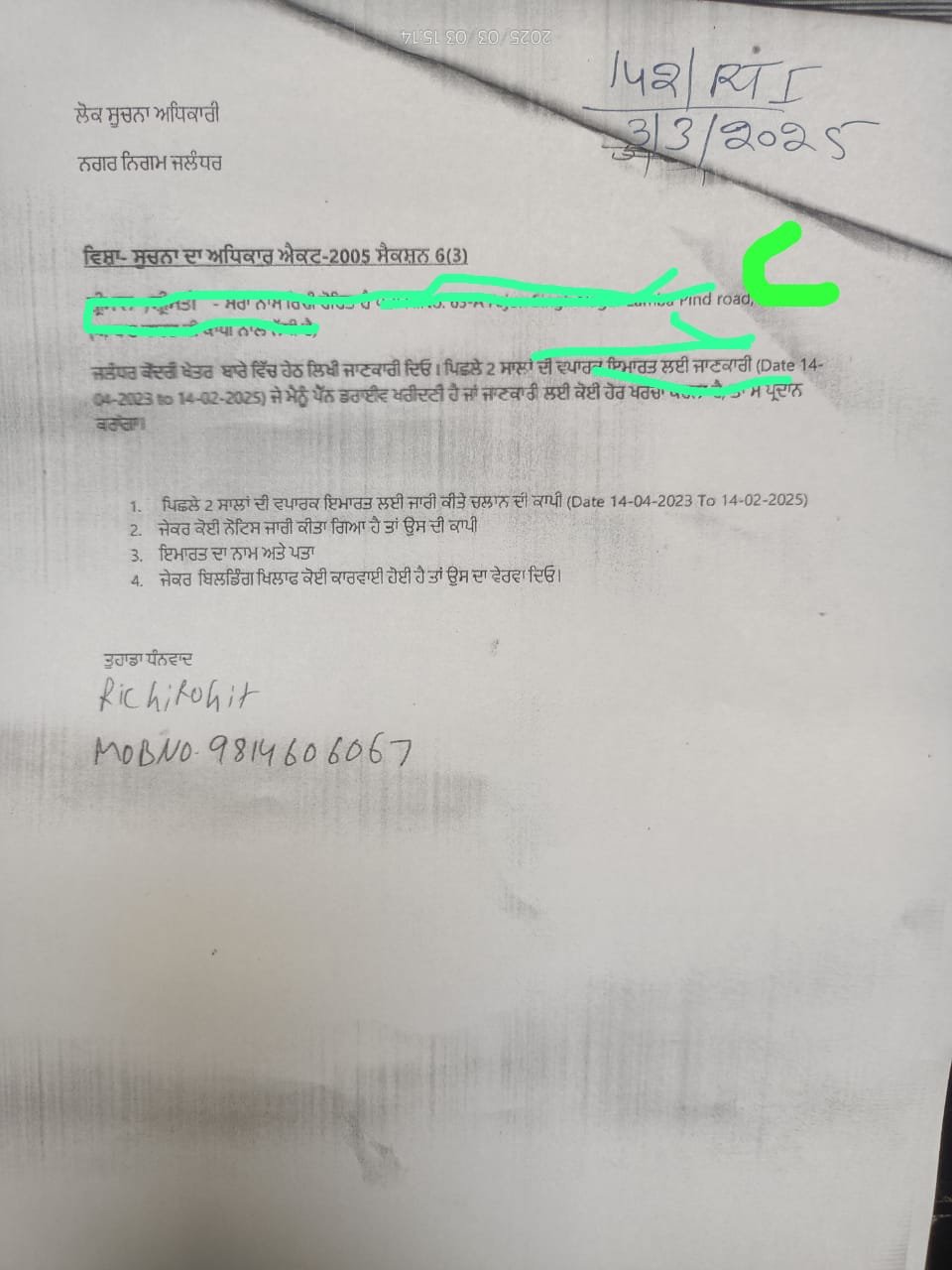 आरटीआई एक्टिविस्ट ने जालंधर सेंट्रल हल्के का कमर्शियल बिल्डिंग का 2 साल का ब्यौरा मांगा, कितने चालान काटे गए