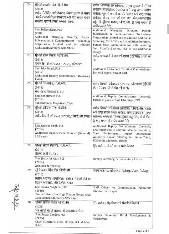 जालंधर नगर निगम के कमिश्नर समेत पंजाब में 31 IAS, IFS और PCS अफसरों का तबादला, डीडी न्यूजपेपर की खबर का असर…….